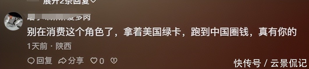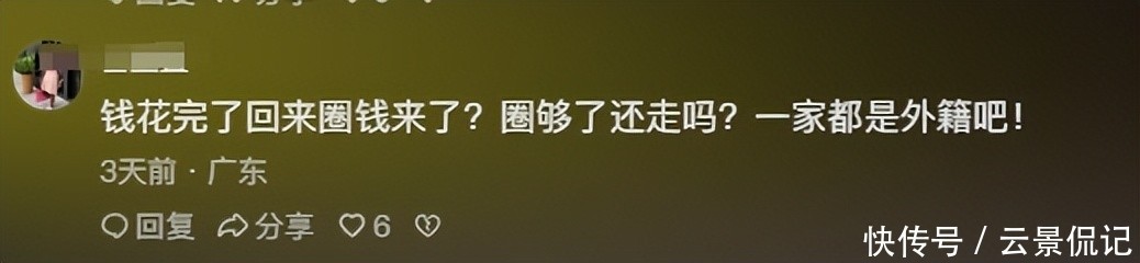 网络评论区迅速沦陷,“早干嘛去了?美国混不下去才回来?”“别来割韭菜了”“你们的钱都是国内观众给的,现在住着大房子却让孩子拿外国籍,良心过得去吗?”诸如此类的声音铺天盖地。